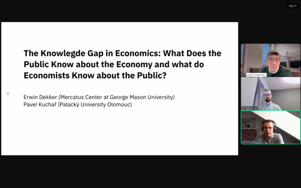Na začátku února 2025 proběhl webinář našeho vyučujícího dr. Pavla Kuchaře na téma „The Knowledge Gap in Economics“. Hlavní otázkou bylo, zda má laická veřejnost skutečně omezené znalosti o ekonomii. Pokud ano, měli by ekonomové přehodnotit svůj přístup ke komunikaci s veřejností?