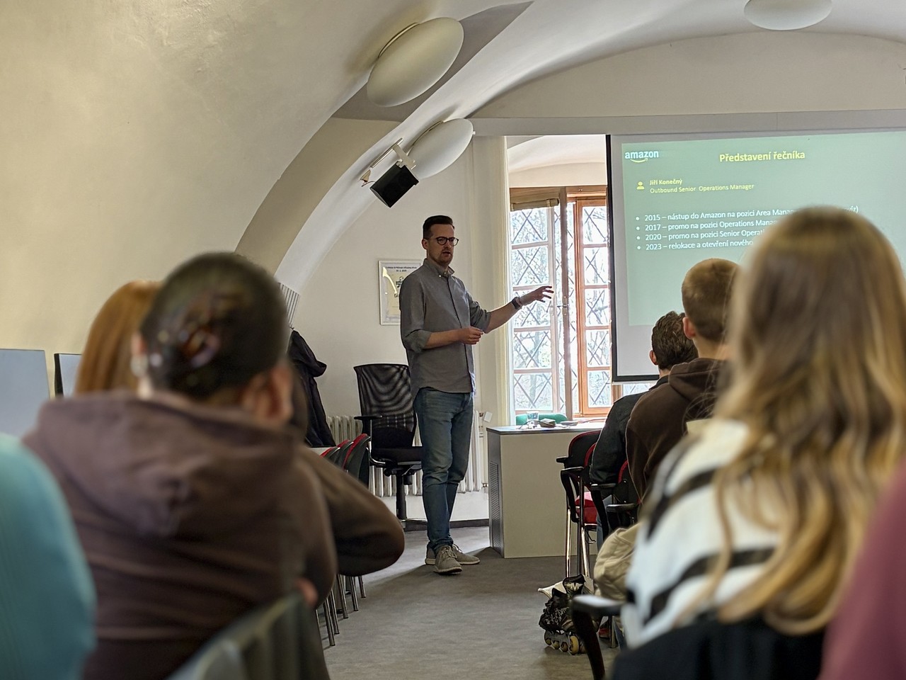 Studenti předmětu Management 2 měli příležitost setkat se se seniorním manažerem kojetínského distribučního centra společnosti Amazon, Ing. Jiřím Konečným. Ten studentům představil fungování jednoho z největších e‑shopů na světě a přiblížil procesy, které následují po vytvoření online objednávky.
